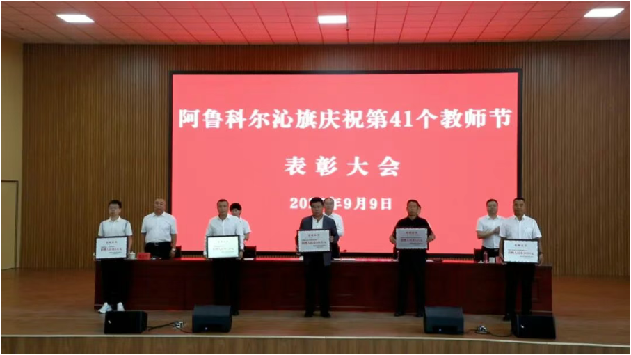 会上,对评选出的10名旗级教书育人楷模、10名优秀教师代表进行了表彰,并向近年来关心支持阿旗教育事业发展的5家企业代表授予荣誉牌匾。