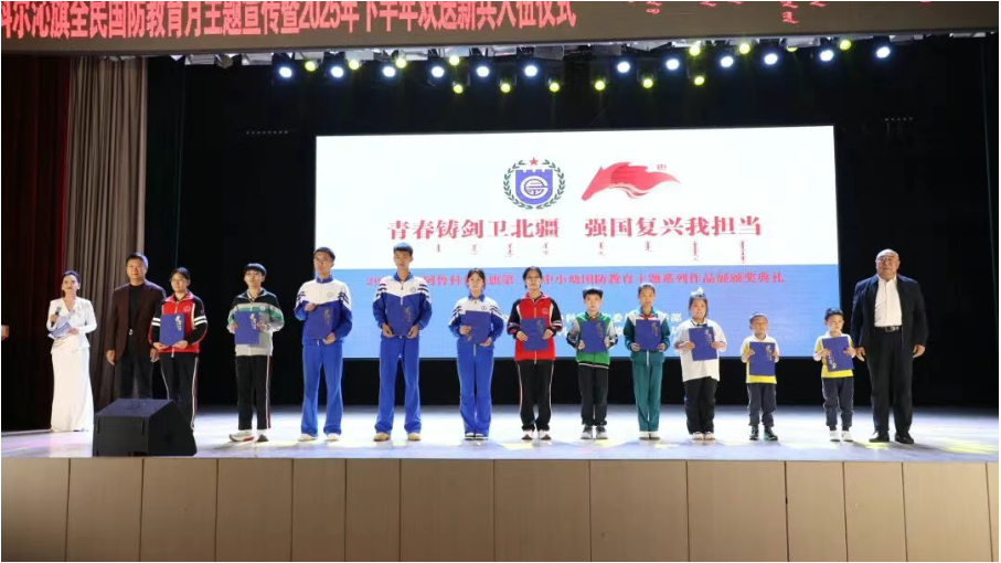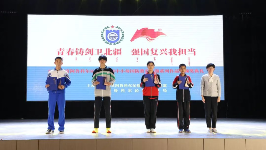 仪式为“全旗青少年国防教育主题系列作品评选活动”“第三届赤峰市青少年国防教育主题系列作品评选活动”中获奖学生及教师颁发奖状。