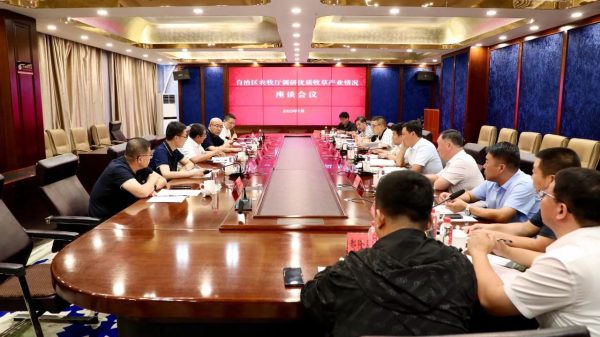 座谈会上,赵玉生一行听取了阿旗优质牧草产业发展及水资源税相关情况汇报,与草企业、旗直有关部门作了深入交流,详细了解了牧草种植、水资源利用、草产品生产加工等情况,并提出工作要求。