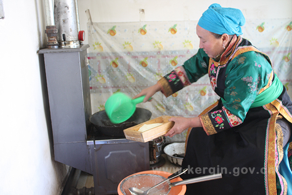 乌日莫的油性凝乳和水分离后,放入锅里,烧火熬制,进一步蒸发水分,提炼出奶黄油。
