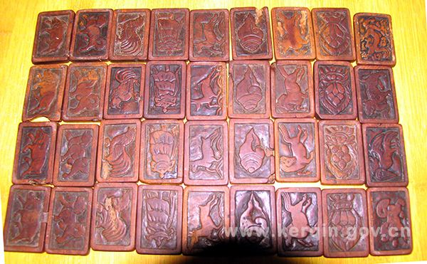 在阿鲁科尔沁旗罕苏木苏木一带,流传着一种古老的牌类游戏,蒙语称“阿木尔巴义斯朗图”,汉意为康乐牌。康乐牌的九样牌分成四组,共有三十六张。从大到小,九样牌分别是:四大力士、如意宝、马、螺号、佛伞、黄羊、鸡、狗和猪。四大力士,又分别是龙、凤、狮子和老虎。康乐牌,用质地坚硬的材料制作,大小如火柴盒,约五毫米厚,上面雕刻各样牌的图形。