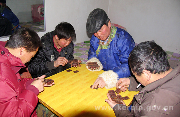 罕苏木苏木阿拉坦温都尔嘎查那仁朝格图家的这副康乐牌,至少已经有一百年的历史。相传,这是原罕苏木庙的喇嘛、著名摔跤手——关布扎布的一副牌。只有兄妹二人的关布扎布,临终时把它留给了两个外甥——也是罕苏木庙的喇嘛苏德宝和瑙日布。后来,这副牌又留传到了关布扎布的俗家外甥——杭来扎布家。那仁朝格图的伯父——今年74岁的拉希拉布坦老人,就是杭来扎布的二儿子。