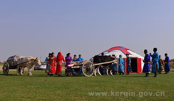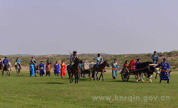 《阿日奔苏木婚礼》,是在蒙古族游牧生产生活方式上形成的婚俗习惯,具有浓浓的草原民族风情,反映了蒙古族人民诚实豪放的性格和多彩多姿的生活场景。