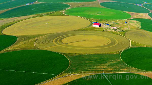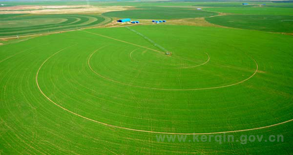 阿旗自2008年发展节水高效优质紫花苜蓿种植至今,全旗已配备指针式自走喷灌设备900台套,草业基地草圈建设2015年已达到1280个,总面积100万亩,能够满足草业观光需要,已在基地核心区修建柏油公路106.78公里,架设10KV供电专线119公里,草业机械功率配备达18.5万千瓦,草业机械数量4600台套,逐步形成了沙地苜蓿、节水高效、集中连片、体系健全、链条完善、质量稳定等特色,是全国范围内集中连片种植紫花苜蓿面积最大的地区。2013年7月4日,被中国畜牧业协会草业分会命名为“中国草都”称号。