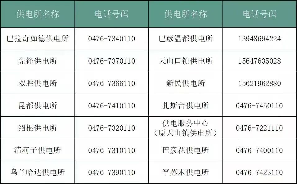 停电时间:2022年11月16日07:00-20:00 停电范围:阿旗殡仪馆、孤山子村、东桥东、民爆公司、三和公司、润通肉业养牛合作社、天山东收费站、国道集锡北:东双山村、天和矿业公司、西蒙矿业、老红星中学、蒙泰二号、大众食品公司、胜付养牛小区、胜利村、秦军农业、润通肉羊养殖专业合作社、胜龙土地整理农业(一、二、三)、河东村土地整理(二、三)、河东村退耕还林(二、三)、胜龙南台、胜东移民小区、东暖热力、胜付移民村、老地震台、南门街路北:实验小学、兴隆佳苑小区、东暖热力公司、育肥厂、万众汽修厂、公路养护站、胜付村(兴隆堡村),房身村农业法阵合作社,曹广伟家庭牧场,田福忠农业,杜国文,钱忠电井用户停电。 11. 停电设备:10千伏昆花线951主干270号杆真空开关 停电时间:2022年11月17日07:00-17:30 停电范围:王爷伙房、赛地花、小王府、额尔吉、翁根毛都、海拉苏、叶力门图用户停电。 12. 停电设备:10千伏白场线425四队分支001号杆真空开关 停电时间:2022年11月18日07:00-18:00 停电范围:中心村、巴彦包特村、张家营子村、巴彦包特小区用户停电。 13. 停电设备:10千伏昆高线958主干003号杆柱上真空开关 停电时间:2022年11月18日07:00-17:00 停电范围:布仁塔拉嘎查、奶牛小区、新宝力格嘎查、牧场、金荣照明、尚申宝冷嘎查、苏布力嘎小组、道布小组、乌兰小组、宝图小组、套木台小组、乌苏义和嘎查、苏格图小组、杨子嘎查、查干花小组、坤都总校用户停电。请用户做好停电准备,如遇恶劣天气,停电顺延。为保证安全,停电期间禁止任何客户进网作业。如有特殊情况,请及时拨打以下抢修电。