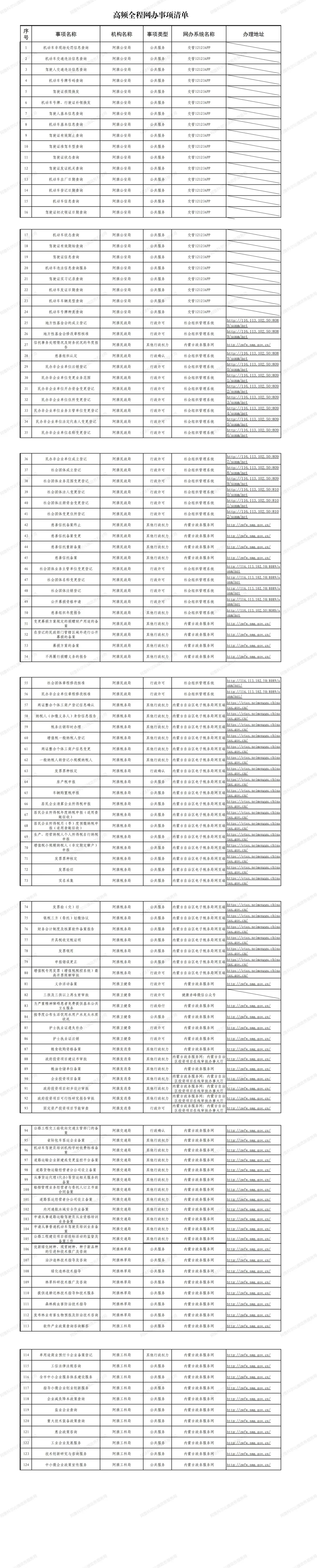 为方便企业群众,阿旗政务服务局联合各审批服务部门梳理了一批可实现全程网办的高频事项清单,让您真正体会什么叫“人在家中坐,事情已办完”的高效便民的政务服务事项“一网通办”新模式。
