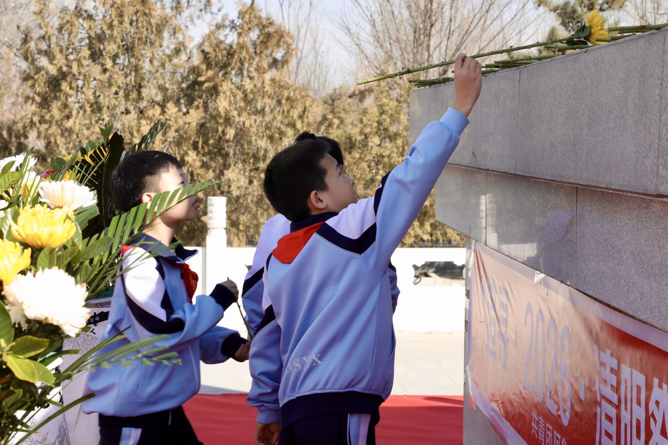 默哀结束后,少先队员齐声献唱《我们是共产主义接班人》,稚嫩嘹亮的歌声回荡在陵园上空,传递着传承红色基因的坚定信念。学生代表们向烈士纪念碑敬献花篮,寄托深切哀思。退役军人代表深情宣讲徐汉林烈士英雄事迹,学生代表以坚定的声音许下诺言,表达传承英烈精神、立志奋进的决心。